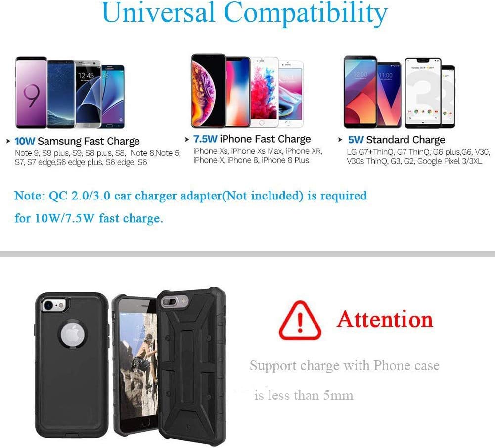 ✔10W Fast Wireless Charging Models is compatible with Samsung Galaxy S9 Plus/S9/S8 Plus/S8/S7/S7 Edge/S6 /S6 edge/S6 edge plus/Note 10 9 5, LG V30/G7